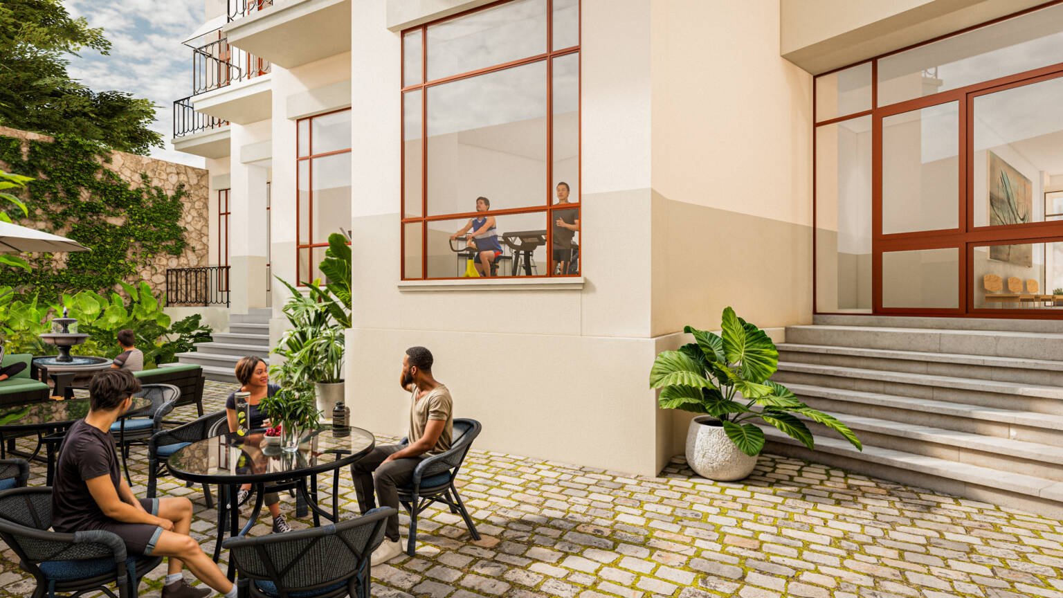 An exquisite central patio serves as the heart of the project, creating a serene oasis of tranquility and natural light for residents.