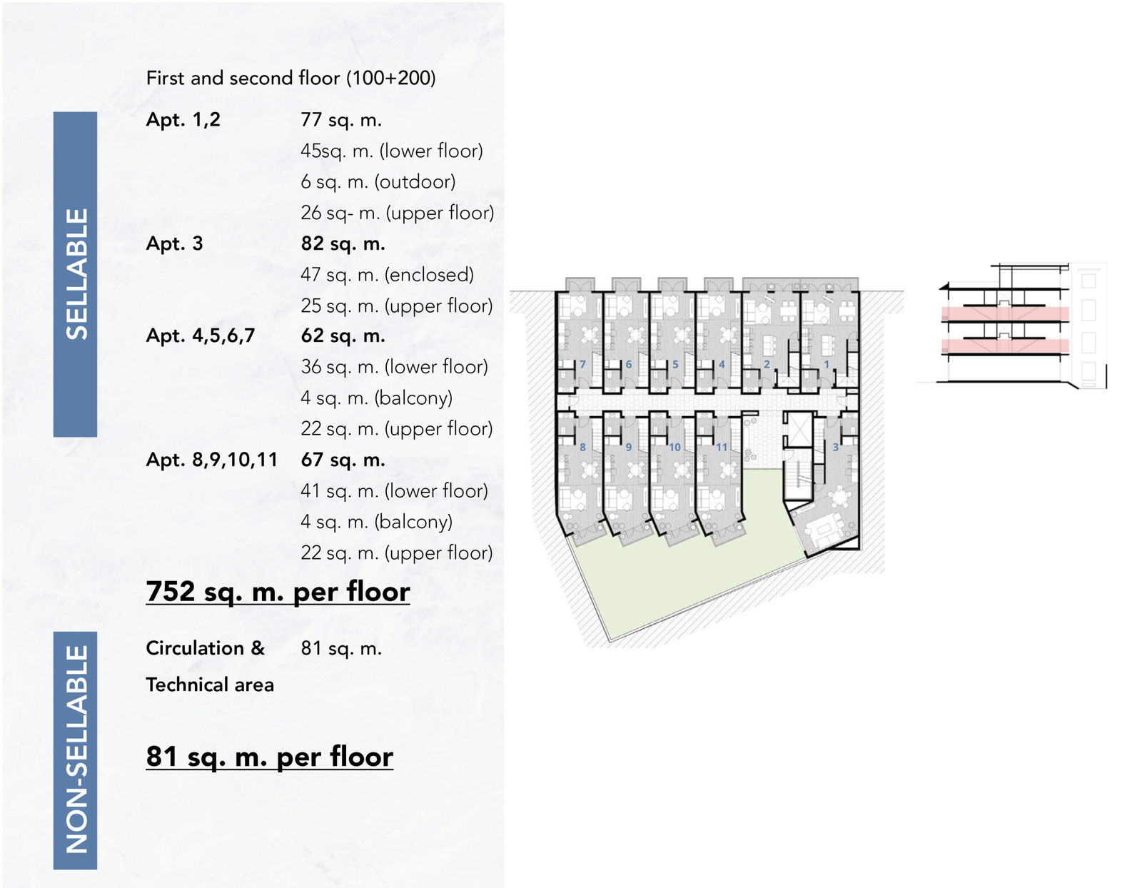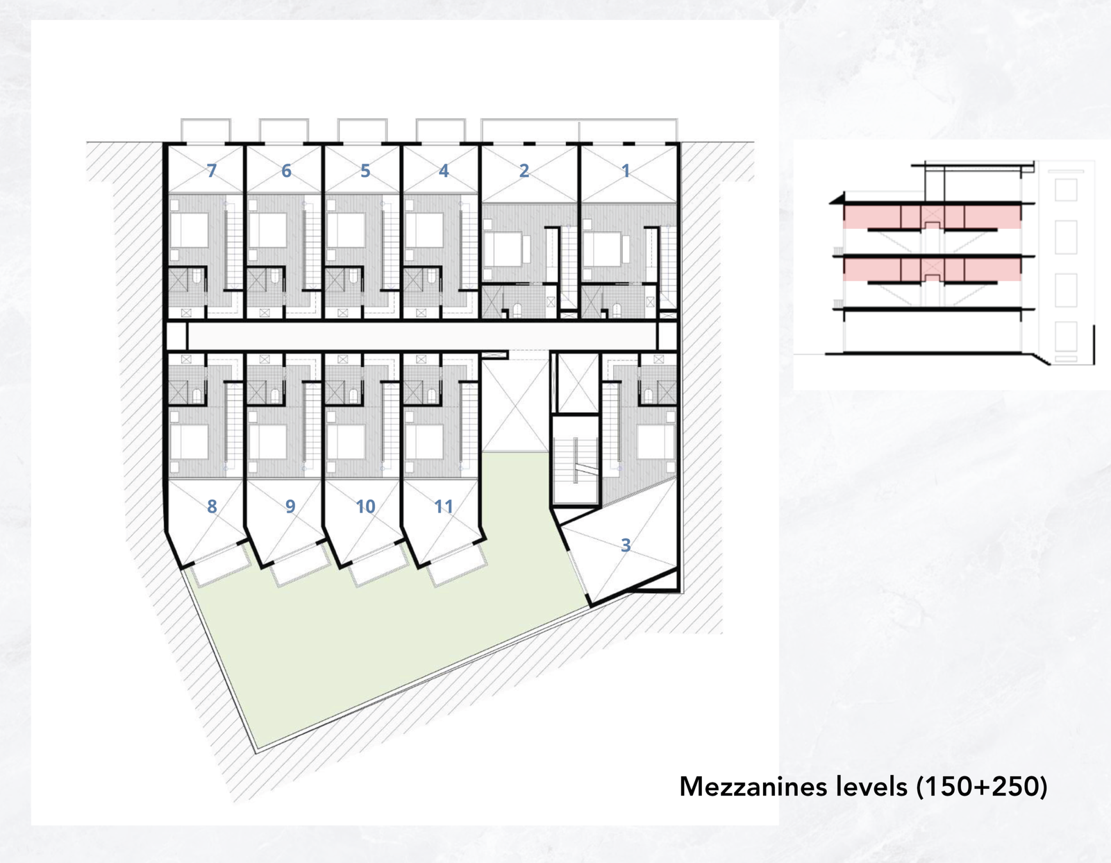 All lofts are distributed across the first, second, and mezzanine levels, offering a variety of layouts while maintaining a consistent architectural language and efficient circulation throughout the building.