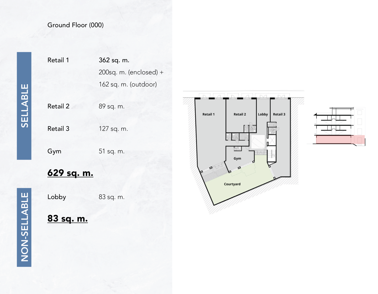 The ground floor configuration integrates retail frontage, a central courtyard, and internal circulation, creating an active yet controlled commercial environment aligned with Casco Antiguo’s historic urban fabric.